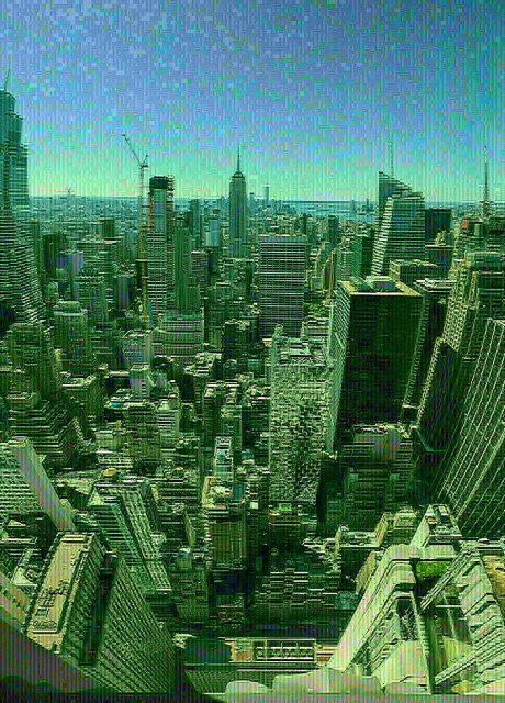 Vue de New York depuis le sommet du Rockefeller Center par beau temps.